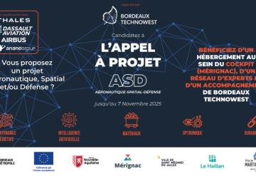 Bordeaux Technowest, en partenariat avec Dassault Aviation, Thales, ArianeGroup et Airbus, lance l’Appel à Projets ASD 2025.