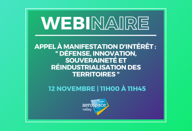La Région Occitanie et le Pôle Aerospace Valley vous convient à un webinaire d'information sur le lancement de l'Appel à Manifestation d'Intérêt (AMI) « Défense, Innovation, Souveraineté et Réindustrialisation des territoires ».