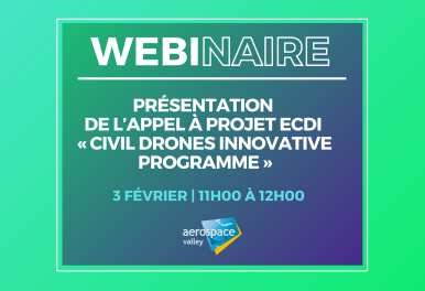 Dans le cadre du lancement de l’Open Call du Civil Drones Innovative Programme, le Pôle Aerospace Valley et le consortium ECDI organisent un webinaire de présentation en français à destination de l’écosystème national.