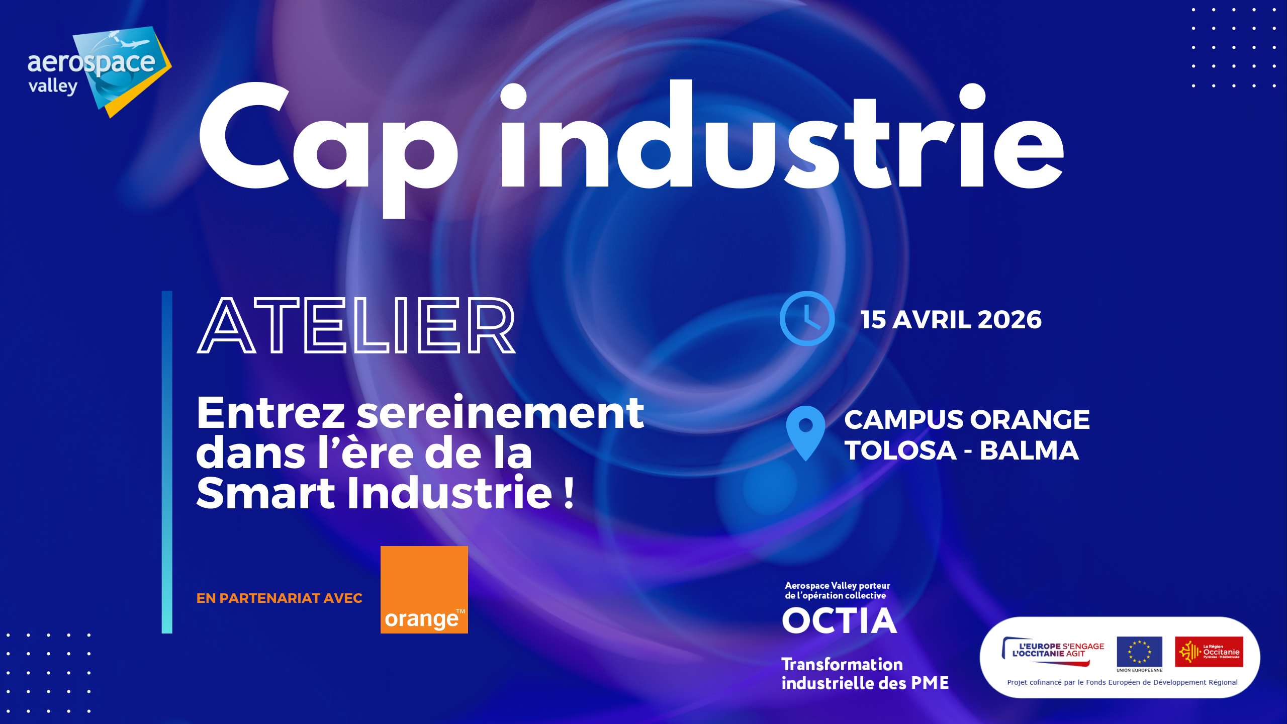 Cet atelier est organisé dans le cadre du projet OCTIA, OPération collective de Transformation Industrielle des PME Aerospatiale, financé par la Région Occitanie et est ouvert seulement aux entreprises industrielles.
