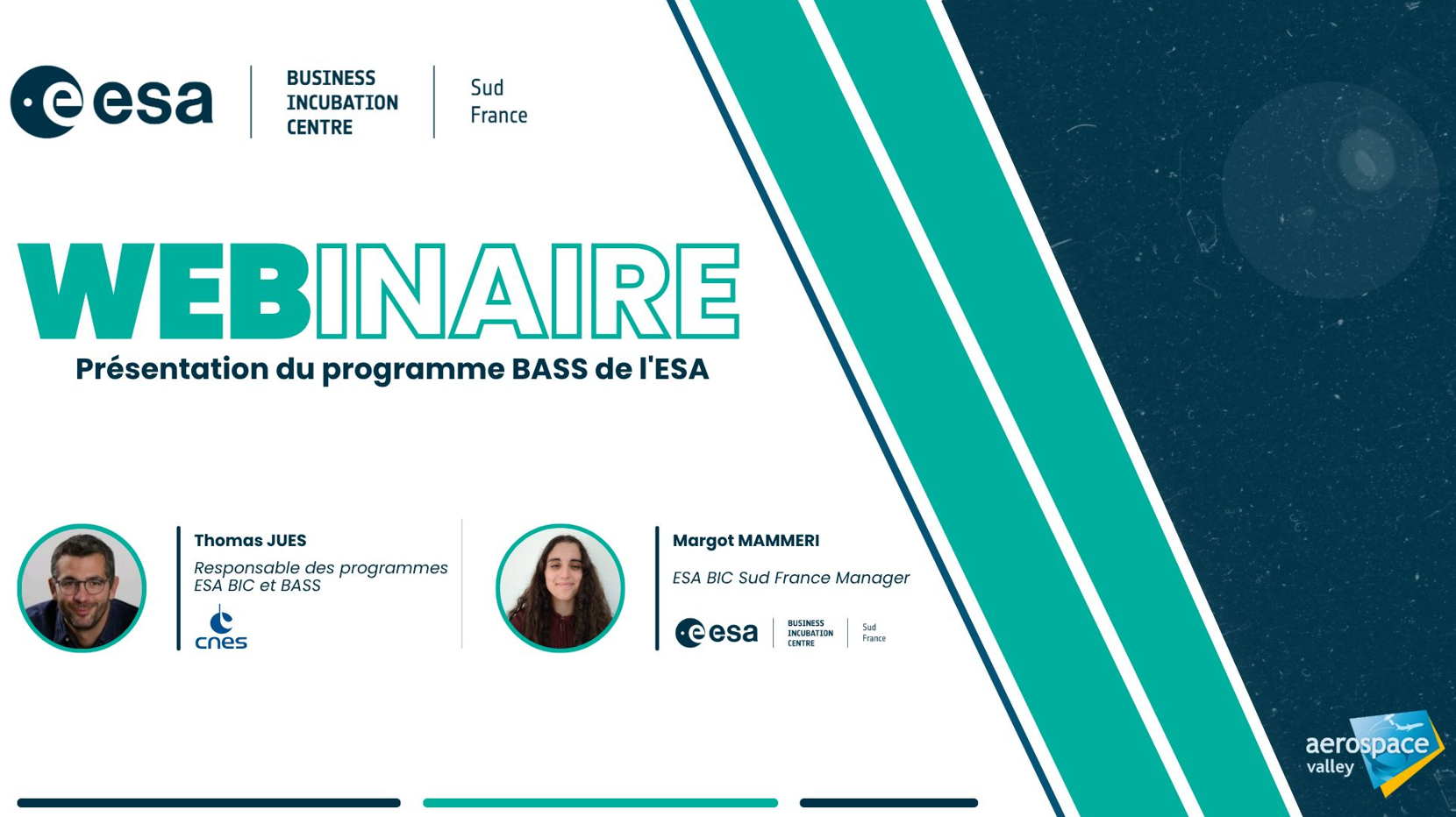 ESA BIC Sud France a le plaisir de vous inviter à un webinaire dédié au programme BASS (Business Applications and Space Solutions) financé par le CNES, de l’Agence Spatiale Européenne (ESA).