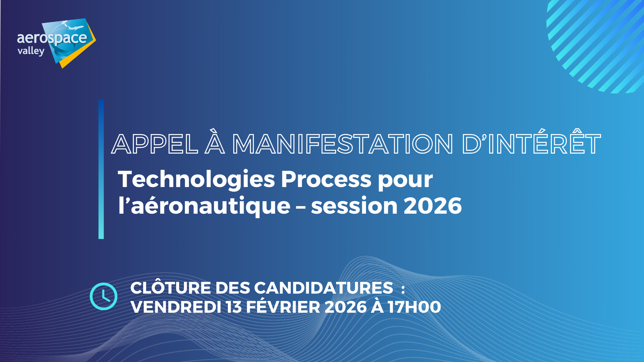 Le Pôle Aerospace Valley lance l’Appel à Manifestation d'Intérêt (AMI) « Technologies Process Aéronautique » dont l’ambition est d’accompagner l’émergence de solutions concrètes répondant aux défis industriels actuels et futurs de la filière.
